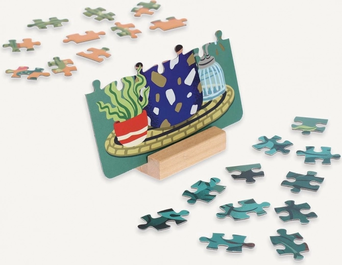 Een spel dat de rust van puzzelen combineert met wedstrijdelementen. Kies je team – cactussen of tropische planten – en ga aan de slag. Winnaar is wie als eerste zijn puzzel voltooit en daarin het laatste gezamenlijke dubbelzijdige stukje uit de houten standaard plaatst.