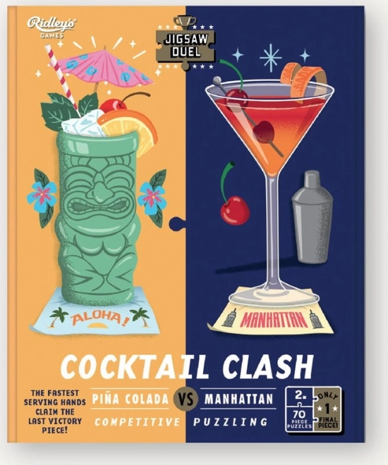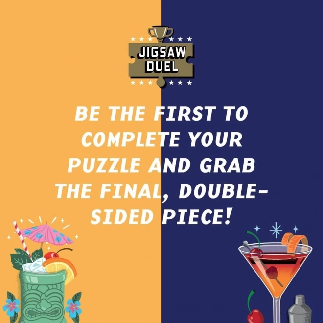 Geniet met z’n tweeën van spannende fun met originele racepuzzels. Twee cocktailmotieven, Piña Colada en Manhattan, leg je tegen elkaar terwijl je strijdt om het laatste dubbelzijdige puzzelstuk in de houten standaard. Ideaal voor een snelle competitie, plezier met vrienden en als cadeau voor puzzelliefhebbers.