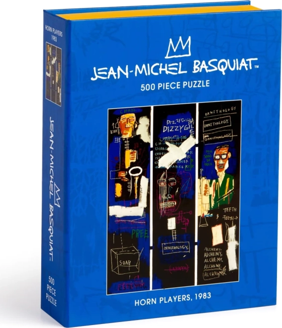 Puzzel Basquiat: Hoornspelers biedt een nieuwe dimensie aan de klassieke puzzel van 500 stukjes dankzij de elegante verpakking in een magnetische doos in de vorm van een boek. Deze indrukwekkende set is een perfect cadeau, niet alleen voor kunstliefhebbers, maar ook voor puzzelenthousiastelingen.