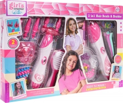 - haarvlechtapparaat ca. 26,5 cm x 7,5 cm x 7,5 cm, - kralenapplicator voor in het haar ca. 26 cm x 5,5 cm x 5 cm, - kralendoos ca. 11 cm x 11 cm x 2 cm, - kraal ca. 0,5 cm x 0,8 cm, - haarborstel ca. 14,5 cm x 6 cm x 2,5 cm, - haarspiraal ca. 4,5 cm x 1 cm, - haarelastiek ca. 9,5 cm x 1,3 cm x 2 cm, - verpakking ca. 44,5 cm x 30,8 cm x 5 cm, |