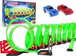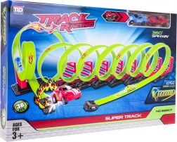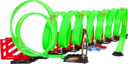 Bouw je eigen racewereld. De set bevat 36 onderdelen voor het eenvoudig opzetten van een baan met meerdere loops, rechte stukken en een sprong door de vurige ring. Dankzij de pull-back aandrijving trek je het autootje simpelweg naar achteren en laat je het los – het schiet met hoge snelheid weg, neemt 360° loopings en raast dynamisch over de baan.