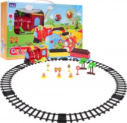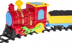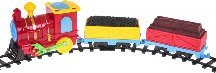 Ontdek de leuke interactieve locomotief voor kinderen vanaf 3 jaar met lichteffecten, realistische geluiden en bewegende onderdelen. De set bevat een ronde baan, 2 wagons (met kolen en met een boom) en verkeersaccessoires. De locomotief rijdt vooruit, de cabine opent tijdens het rijden en binnenin verschijnt een robotfiguur – een geweldige speelgoedset voor de ontwikkeling van fantasie en motoriek.