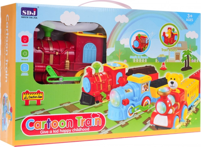 Deze kleurrijke plastic treinset zal elke kleine machinist plezier bezorgen. De locomotief is voorzien van knipperende lichten aan de voorkant, bovenop en aan de zijkanten van de cabine en geeft tijdens het rijden realistische geluiden weer. Een interessant element is de openende cabine, waaruit tijdens het rijden een robotfiguurtje tevoorschijn komt.