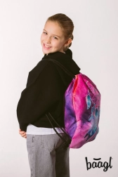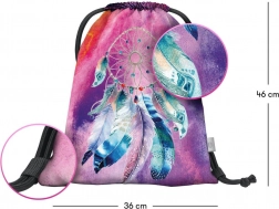 Stijlvolle roze BAAGL-zak met Dreamcatcher-motief, ideaal voor schoenen en kleine spullen in de vrije tijd. Gemaakt van een stevig, afwasbaar materiaal en dankzij de stevige koorden gemakkelijk dicht te trekken en comfortabel op de rug te dragen.