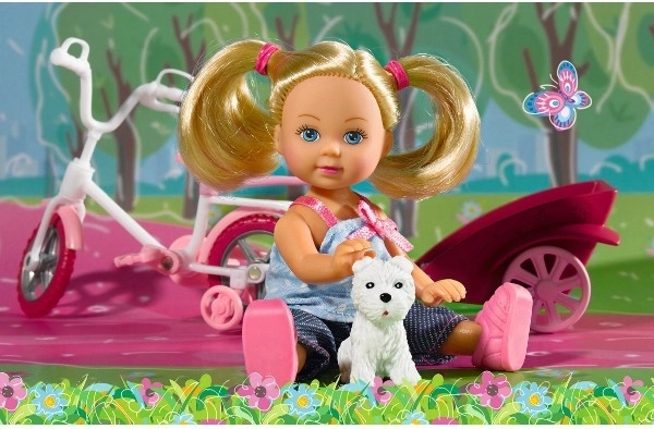 De Evi Love-pop brengt kinderen heerlijke verhalen vol avontuur. Met de driewieler en afneembare aanhanger kan Evi haar witte hondje veilig meenemen op uitstapjes. Dankzij de buigzame knieën zit ze gemakkelijk op de fiets en kunnen kinderen genieten van realistisch spel met aandacht voor beweging en de zorg voor een diertje.