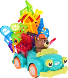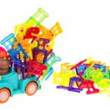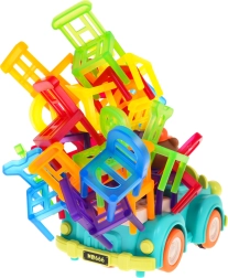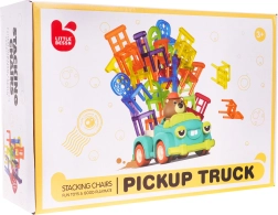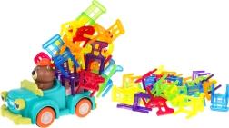 Het vaardigheidsspel Opvouwbare Stoelen en Auto is ideaal voor kinderen vanaf 3 jaar. Het bestaat uit 48 kleurrijke stoeltjes van verschillende vormen en een auto die in een cirkel rijdt. Je taak is om een toren van stoelen te bouwen op de bewegende auto. Deze taak verbetert de coördinatie tussen hand en oog en verhoogt de nauwkeurigheid. De auto kan de draaidiameter veranderen tussen 40 cm en 120 cm met behulp van een wiel aan de onderkant van de auto.