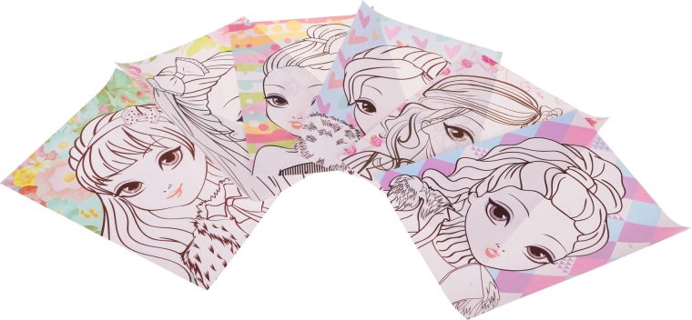 De set bevat stencils en afbeeldingen met prinsessen, waarmee kinderen hun eigen schilderijen en tekeningen kunnen maken.