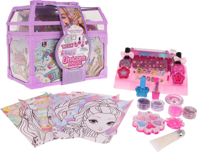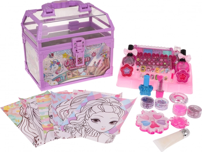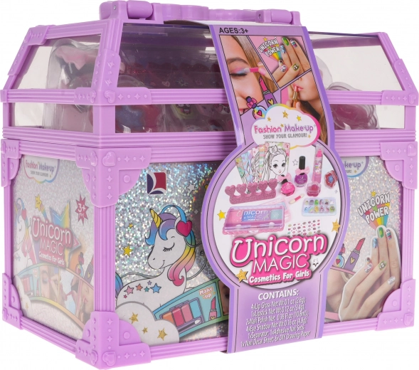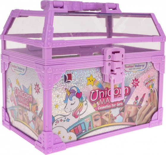 Cosmetic set voor prinsessen bevat een breed scala aan veilige cosmetische producten in een praktische schatkist met een eenhoornmotief. Deze schatkist heeft een handvat voor eenvoudig gebruik, waardoor het kinderen in staat stelt hun favoriete cosmetica overal mee naartoe te nemen.