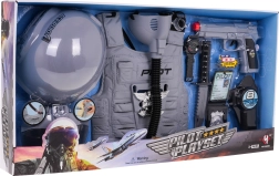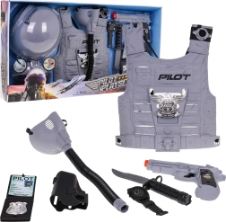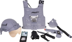 Set van kleine piloot voor kinderen vanaf 3 jaar biedt plezier en educatie. Bevat een helm, een vest, een masker, een speelgoedpistool en andere realistische accessoires voor rollenspel.