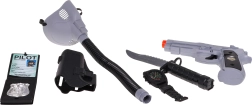 De set bevat een masker met ademslang, speelgoedpistool, mes en andere realistische accessoires voor avontuurlijke spellen.