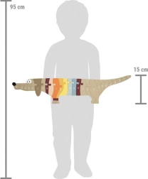 Kleurige houten puzzel in de vorm van een teckel met 26 grote stukjes helpt kinderen op speelse wijze het alfabet onder de knie te krijgen. Dankzij de massieve uitvoering liggen de stukjes goed in kleine handjes en ondersteunen ze de fijne motoriek, het logisch denken en de concentratie. Ideaal als educatief spel voor kleuters en jonge schoolkinderen, en ook leuk als stijlvolle decoratie voor de kinderkamer.