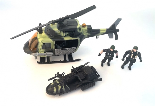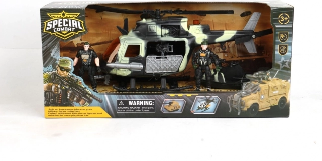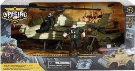 Deze speciale gevechtsset biedt kinderen eindeloze mogelijkheden voor fantasierijk spel. Je kunt kiezen tussen een helikopter of terranauto, en elke set bevat een actiefiguur en extra speelaccessoires voor realistische militaire scenario's.