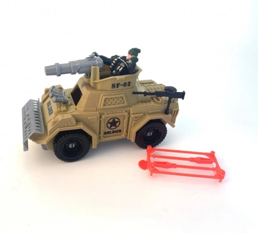 - Inhoud van de verpakking: militair voertuig, soldatenfiguur, accessoires.