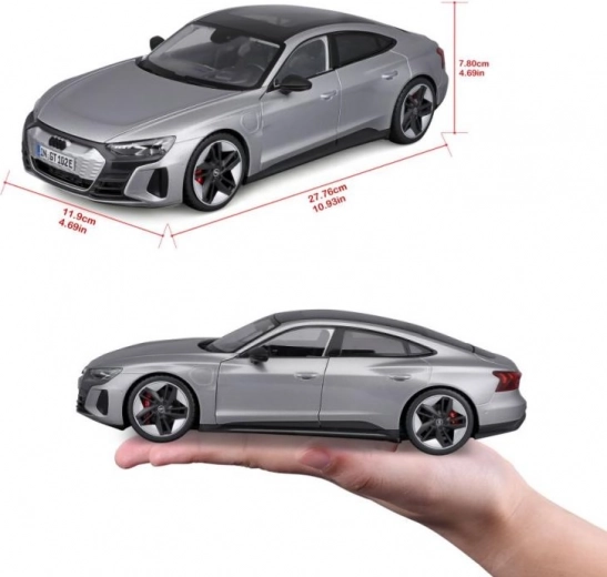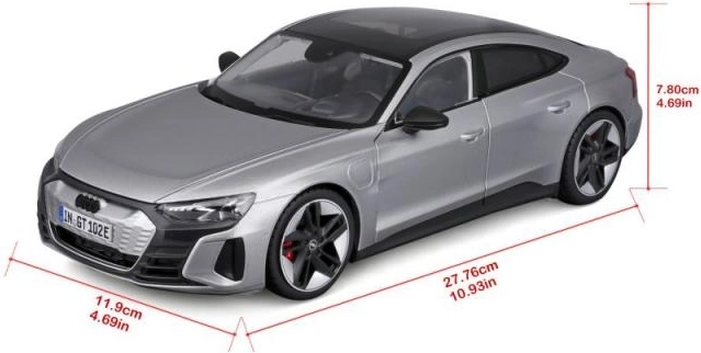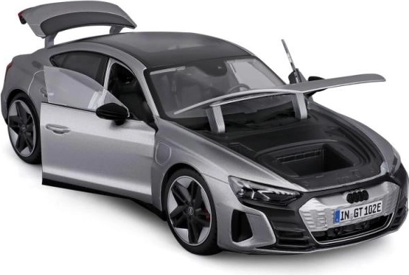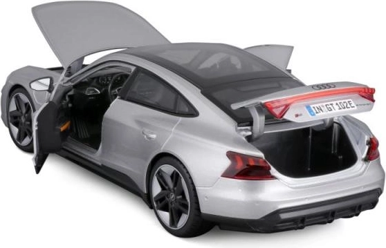 Dankzij het stevige die-cast chassis blinkt het uit in duurzaamheid en kleurechtheid. Het verfijnde interieur, de openende deuren, motorkap en bagageruimte (per versie) onderstrepen de authenticiteit van de echte AUDI RS e-tron GT.