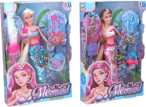 Een schattige zeemeerminpop die elke kleine liefhebber van de onderwaterwereld zal verrukken. Ze is 29 cm groot, heeft een prachtige staart en wordt geleverd met rijke accessoires: sieraden voor de pop, een dolfijnfiguurtje en een haarborstel. Verkrijgbaar in kleurrijk assorti blauw of roze.