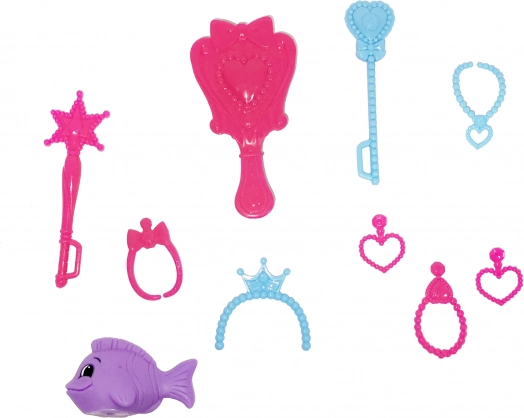 - Rijke accessoires – sieraden voor de pop, dolfijnfiguurtje en een haarborstel voor gemakkelijk kammen.