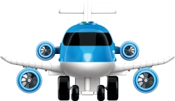 Ontdek plezier op de grond én in de lucht. Het grote vliegtuig met effecten is klaar voor actie – na het indrukken van de vier knoppen op de neus worden licht- en geluidseffecten geactiveerd die de realistische vliegervaring versterken. Dankzij de frictiemotor rolt het vliegtuig soepel over de vloer en met de openende achterklep laad en los je de autootjes gemakkelijk.