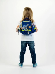 Verstelbare schouderbanden, meerdere vakken en een binnenvoering met politiethema maken het organiseren en meenemen van de hele set eenvoudig.