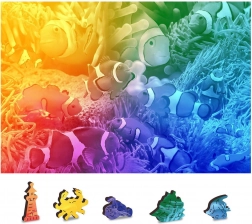 De dubbelzijdige 2-in-1 uitvoering zorgt voor dubbel zoveel plezier: leg aan de hand van de kleurrijke afbeelding van tropische vissen, of probeer de uitdagendere variant met het patroon op de achterzijde. Het kleinere aantal stukjes betekent niet minder uitdaging – de uiteenlopende vormen testen geduld, opmerkzaamheid en logisch denken en zorgen voor ontspanning.