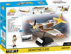 Bouw een natuurgetrouw uitgevoerd vliegtuig Dewoitine D.520 op schaal 1:32 van COBI uit 335 onderdelen. Het model heeft bewegende onderdelen (propeller, rolroeren, te openen cockpit, inklapbaar landingsgestel), 100% prints zonder stickers, een pilotenfiguur en een standaard met naamplaatje. Gemaakt in de EU en compatibel met andere merken bouwstenen.