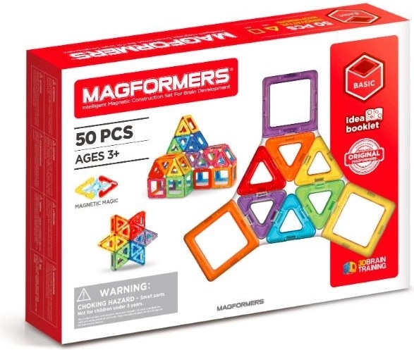 MAGFORMERS SET 50 zijn blokken met ingebouwde sterke neodymiummagneten die elkaar altijd aantrekken. Breng eenvoudig de zijden van twee blokken dicht bij elkaar en ze verbinden zich onmiddellijk. Dankzij de blokken in geometrische vormen kun je prachtige driedimensionale bouwwerken maken. Voor het spelen kun je de meegeleverde handleiding gebruiken, extra voorbeelden op magformersworld.com bekijken of je eigen fantasie gebruiken. De set bevat: 26 driehoeken en 24 vierkanten.