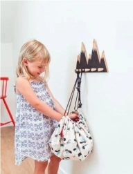 De zak is ruim genoeg voor verschillende soorten speelgoed en kan tegelijk makkelijk opgevouwen, opgehangen of onder het bed opgeborgen worden. Kinderen houden van het eenvoudige gebruik, ouders waarderen de moeiteloze orde en de mogelijkheid om speelgoed altijd bij elkaar te houden.