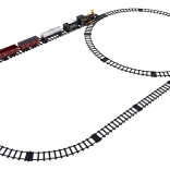 Deze treinset biedt een elliptisch spoor met afmetingen van ongeveer 213 cm bij 106 cm. Tijdens het rijden laat de locomotief rook uit de schoorsteen komen na bijvullen met water (pipet inbegrepen) en het voorlicht brandt. Eenvoudige verbinding van het spoor zorgt voor veilig en duurzaam gebruik. De set bevat: