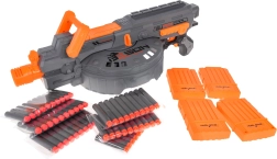 Beleef een geweldig spel met de Blaze Storm grijze karabijn, die zorgt voor veilige en interactieve spellen dankzij zachte schoten. Kinderen kunnen eenvoudig magazijnen vullen met een druk op de knop en met plezier hun schietvaardigheden bekijken.