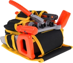 Alle speelgoedonderdelen zijn ontworpen met nadruk op veiligheid en ergonomie, zodat ze uitstekend passen in kinderhandjes. De textiele riem is uitgerust met een hoofdvak met klittenband en verschillende kleinere zakjes, waardoor al het gereedschap goed georganiseerd en gemakkelijk toegankelijk blijft.