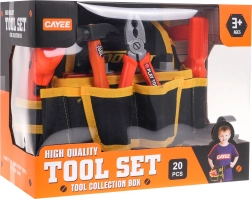 Speelset gereedschap voor kinderen vanaf 3 jaar is ideaal voor het ontwikkelen van fantasie en motorische vaardigheden. Bevat een textiele riem en een reeks kunststof gereedschappen voor het veilig nabootsen van echte klusjes.