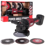 Interactieve accu-slijper voor kinderen vanaf 3 jaar, die eruitziet als een echt gereedschap maar volledig veilig is. De kinderslijper is zo ontworpen dat de schijf onmiddellijk stopt zodra het kind deze aanraakt. De set bevat drie verwisselbare schijven met verschillende uiteinden voor een realistische ervaring.