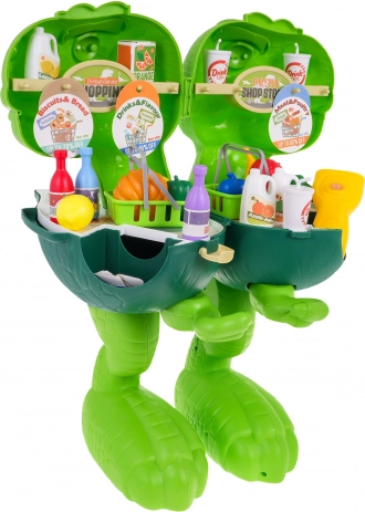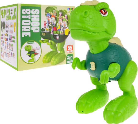 Je verandert de dinosaurus eenvoudig in een winkel, wat dubbele pret en educatie biedt. Kinderen kunnen met dinosaurussen spelen en tegelijk boodschappen doen in een klein winkeltje.