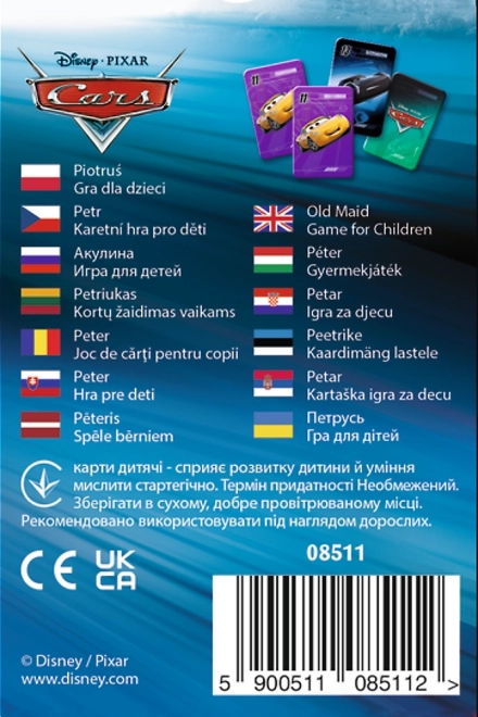 Het traditionele spel Zwarte Piet vermaakt kinderen al generaties lang. In deze editie met het thema Auto’s delen de spelers alle kaarten, vormen overeenkomende paren en leggen die geleidelijk af. De spanning stijgt bij elke beurt – wie aan het einde de kaart Zwarte Piet overhoudt, verliest.