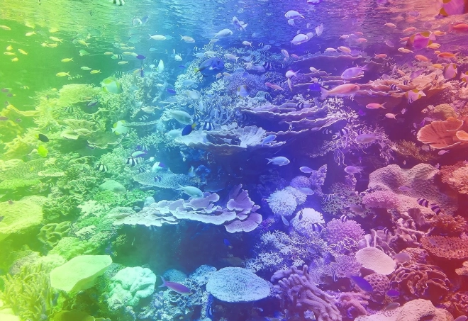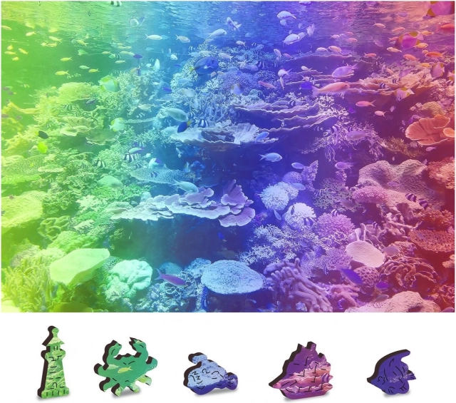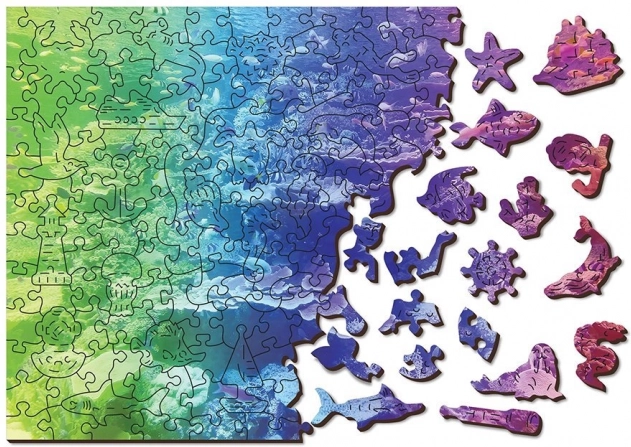 Leg de puzzel aan de hand van het kleurrijke koraalrifmotief of probeer de uitdaging van het leggen op vorm aan de achterkant met patroon.