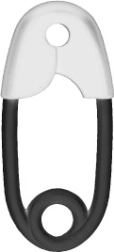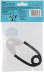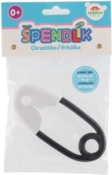 Klassieke rammelaar voor baby's in de vorm van een veiligheidsspeld, ideaal voor de eerste pogingen van een baby om iets vast te pakken. Het is licht en contrasterend, wat de aandacht van baby's stimuleert.