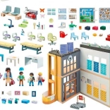 Ontdek spelenderwijs leren met de figureset City Life – grote school. Kinderen kunnen eenvoudig lessen naspelen in verschillende klaslokalen, gebruikmaken van het verplaatsbare interactieve bord en tekenvellen die creativiteit en verbeeldingskracht stimuleren.
