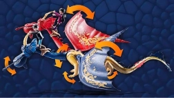 De draak heeft beweeglijke poten, kop en nek en de grote vleugels draaien in alle richtingen. Dankzij de afneembare zadels kunnen de helden comfortabel opstijgen en de actie tegemoet gaan. Elke kop kan bovendien een ijspeil afvuren – plaats het projectiel door de bek te openen via de hendel onder de kin en met dezelfde beweging kun je ook het schot lossen.
