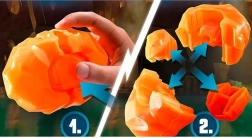 - Kristalelement – de draak “verbrijzelt” met zijn hoorn een grote kristal voor dramatische speelmomenten.