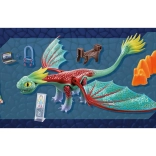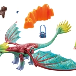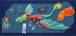 Met deze bouwset stappen kinderen moeiteloos in de magische wereld van draken. De draak heeft beweeglijke poten, bovenzijde van het hoofd en vleugels die in alle richtingen kunnen worden gedraaid. De veren/kammen aan de achterzijde van het hoofd en de punt van de staart zijn gemaakt van een zacht materiaal voor veiliger en realistischer spel.