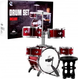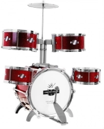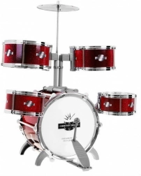 De set bevat alles wat een kind nodig heeft om met muziek te beginnen – een vijfdelige trommelset met een bekken en stokken.