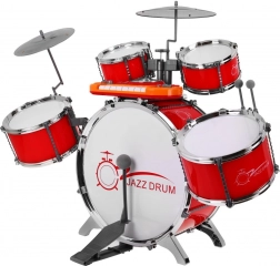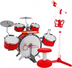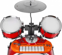 Deze grote muziekset voor kinderen in het rood combineert realistische drums met een elektronisch keyboard en een microfoon op standaard. Kinderen spelen veilig dankzij de zachte puntjes van de drumstokken die de trommels beschermen en genieten van lichteffecten en de vele keyboardfuncties. De set is ideaal voor de eerste muzikale stapjes, ritmeontwikkeling en creativiteit.