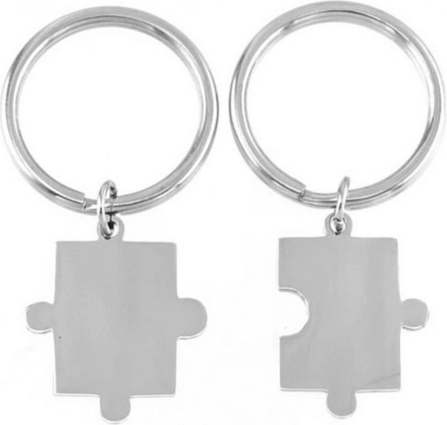 Geef een origineel symbool van verbondenheid – twee puzzelvormige hangers die perfect in elkaar passen. Dankzij chirurgisch staal met een glanzende afwerking zijn de sleutelhangers onderhoudsvriendelijk, roesten ze niet en behouden ze langdurig hun uiterlijk.