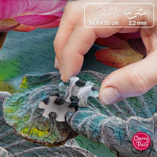 Geniet van deze hoogwaardige puzzel met een afbeelding van prachtige roze lotus bloemen. De puzzel is met precisie ontworpen en toont prachtige bloemen in volle bloei.