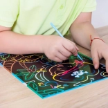 Door de zwarte toplaag weg te krassen, ontwikkelen kinderen hun fijne motorische vaardigheden en geduld.