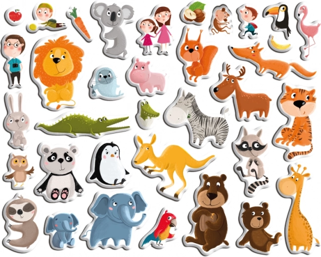 - 35 magnetische elementen met dieren uit de dierentuin voor eindeloze combinaties van speelscènes.