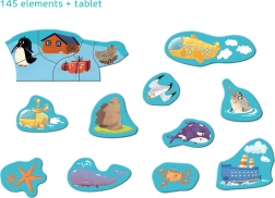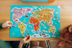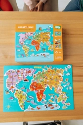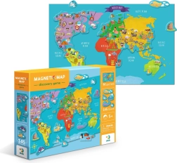 Ontdek een leuke en educatieve manier om kinderen te leren over de wereld om ons heen. De magnetische wereldkaart bevat 145 stukken die eenvoudig op het magnetische bord bevestigd kunnen worden om een compleet beeld van de wereld te creëren.