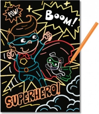 Creatieve DODO krasplaat Superheld 21 × 29 cm. Ontwikkelt fijne motoriek en verbeeldingskracht, kleureffect, inclusief krasschrijfpen.