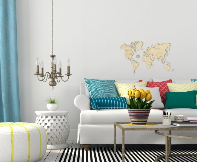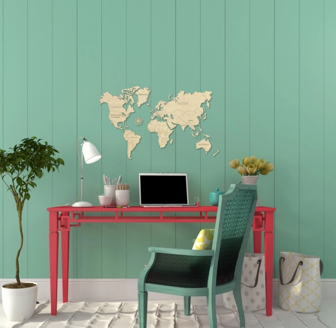 De kaart dient als stijlvolle wanddecoratie en helpt zowel kinderen als volwassenen beter oriënteren in de wereldgeografie.