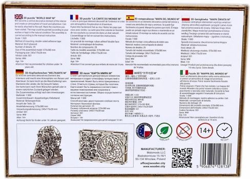 De kaart is perfect om belevenissen vast te leggen: bezochte plaatsen kun je inkleuren of in het hout speldjes prikken met vlaggetjes. Dankzij de makkelijke moeilijkheidsgraad zet je haar in ongeveer een uur in elkaar, thuis of op kantoor.