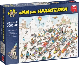 Geniet urenlang van plezier met de kleurrijke en grappige afbeelding van illustrator Jan van Haasteren. Deze hoogwaardige puzzel met 2000 stukjes zit vol humoristische details en typische elementen zoals een haaienvin en verborgen personages. Perfect voor liefhebbers van rijk gedetailleerde illustraties en een uitdaging die van het eerste tot het laatste stukje boeit.